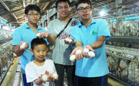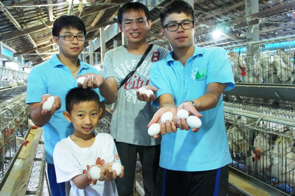 休閒系大三的蔡皓哲、王元勝、王惠鈴、劉雅涵、楊佳瑾,到竹塘鄉的梁欽牧場幫忙,他們捲起褲管、拉起衣袖,和老闆一起餵雞、撿雞蛋、分裝雞蛋。劉雅涵同學說,她很喜歡動物,所以自告奮勇到雞場幫忙。以前都覺得雞場會很髒、很臭,實際到牧場工作,才發現養雞其實很現代化,整個雞場都很乾淨,張富傑老闆透過科學管理,用心照顧每一隻雞。