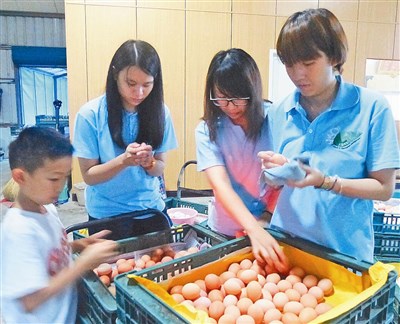 大三學生蔡皓哲選擇到養雞場體驗,協助撿雞蛋、挑選和清潔,他說,平常摸到的都是冰箱裡冰冷的雞蛋,「但這裡的雞蛋是有溫度的,和這次的體驗課程一樣。」學生王惠鈴也說,她本來以為養雞場是又髒又臭的,但到了養雞場,才知道管理良好的養雞場是很乾淨的,「這次的體驗相當珍貴。」