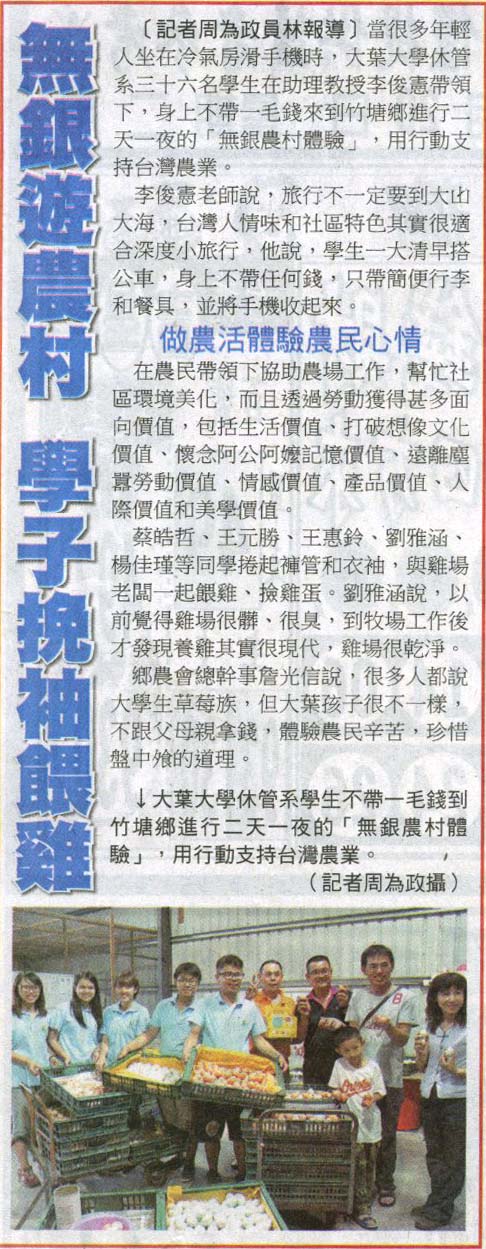 無銀遊農村 學子挽袖餵雞