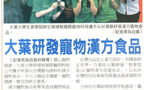 下一則:大葉產學合作 研發漢方寵物食品