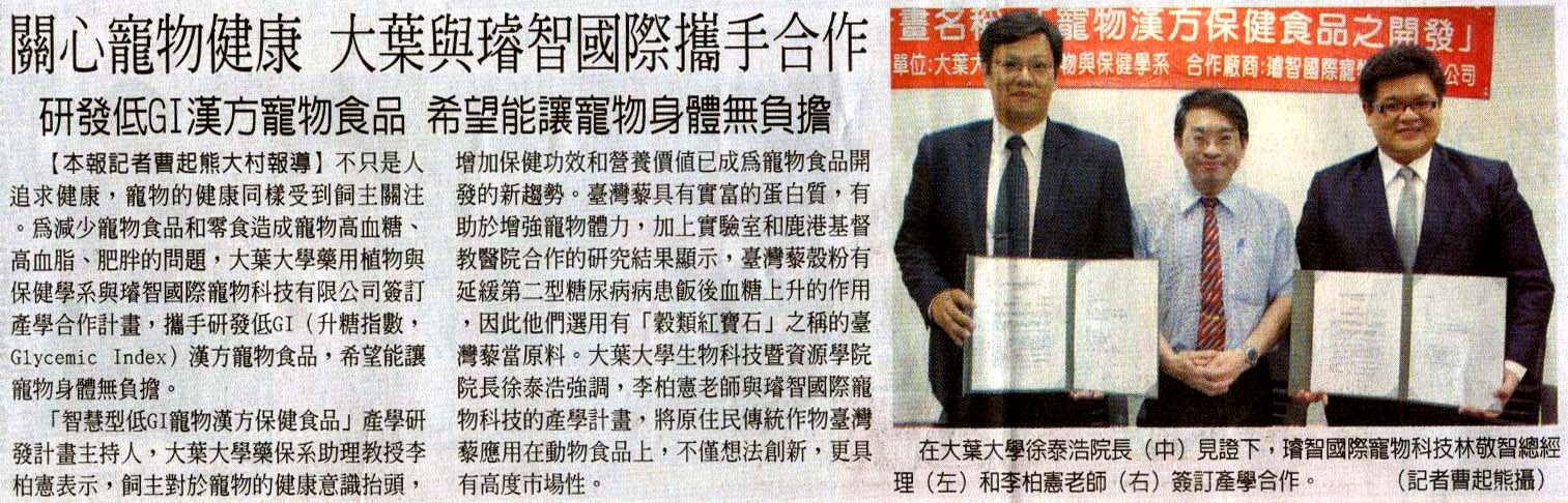 關心寵物健康 大葉與璿智國際攜手合作