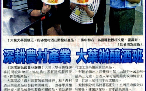 上一則:大葉輔導酒莊 提昇釀酒技術