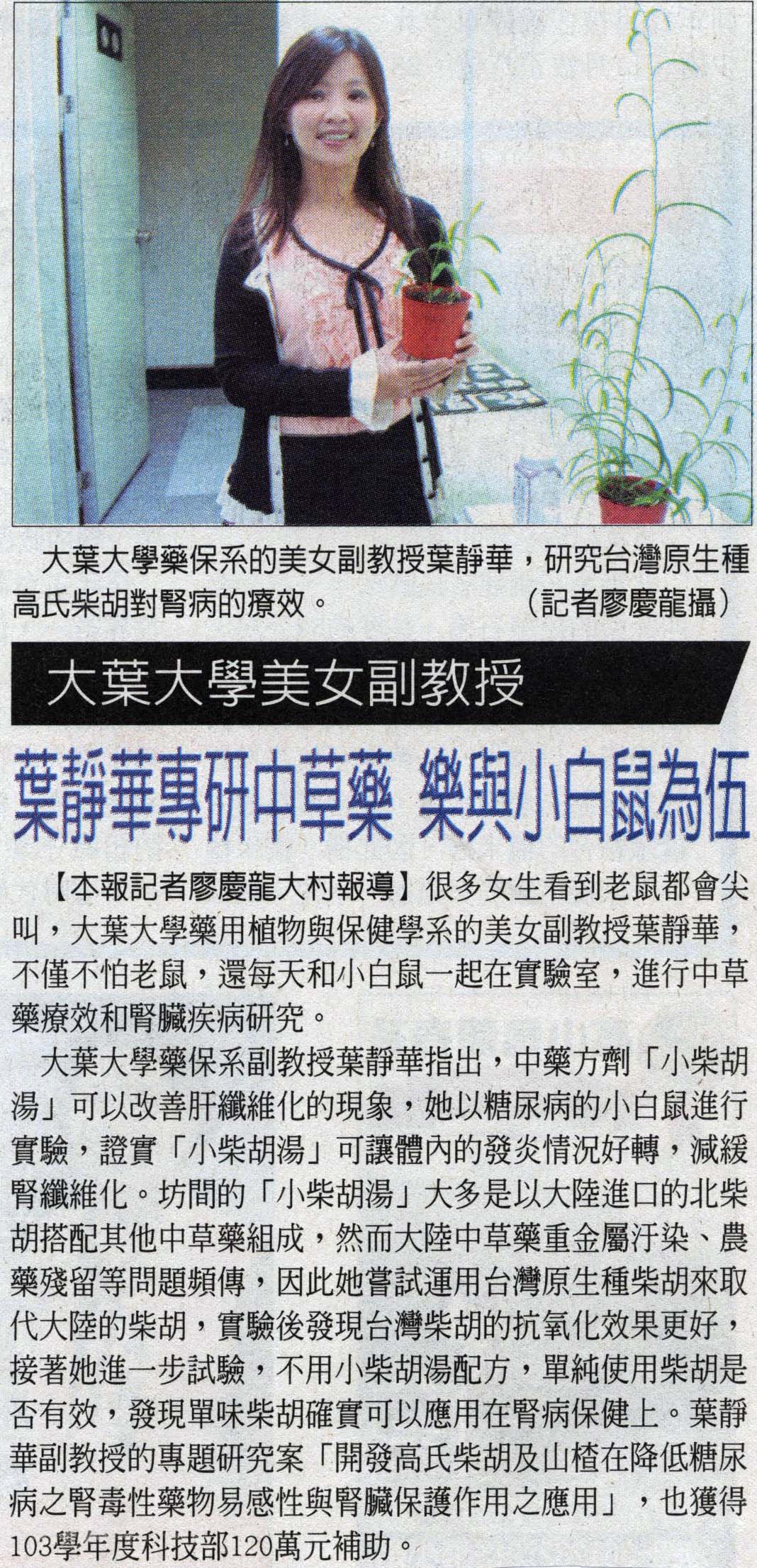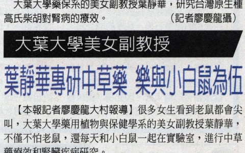 大葉大學美女副教授 葉靜華研中草藥 樂與小白鼠為伍