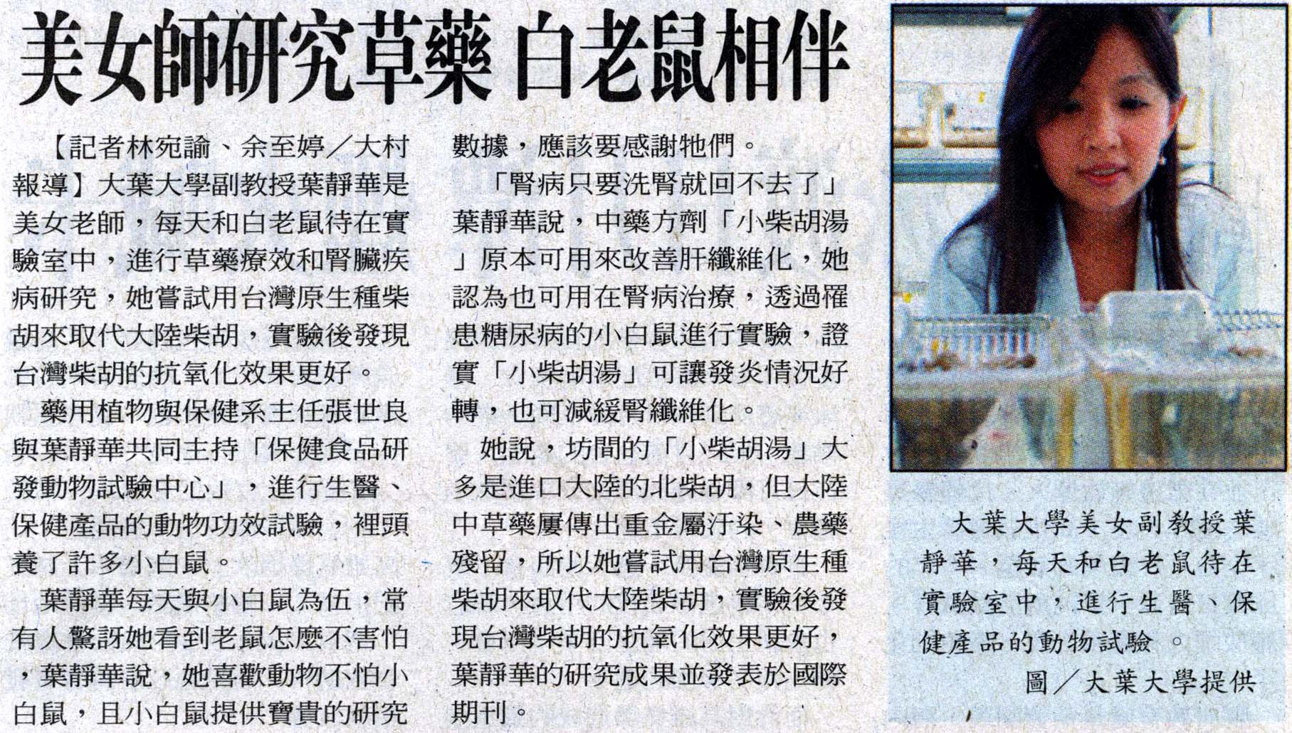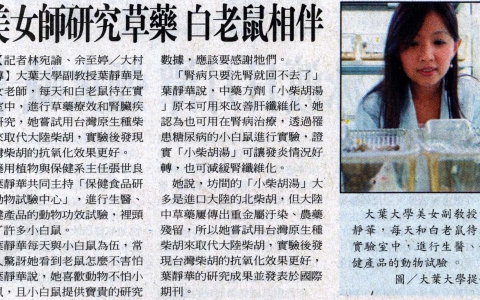 下一則:大葉大學美女副教授 葉靜華研中草藥 樂與小白鼠為伍