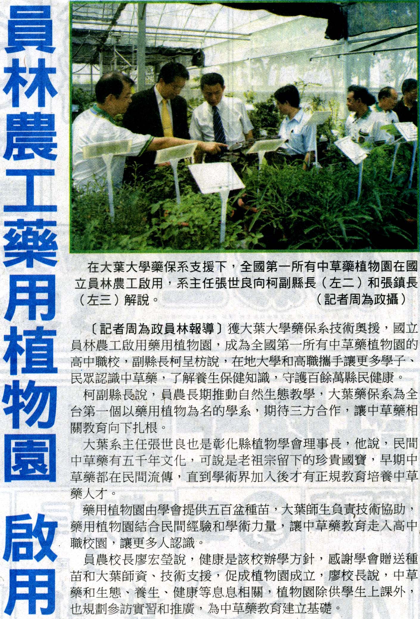 員林農工藥用植物園 啟用