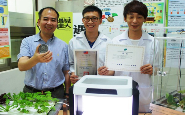 食安問題頻傳,不少民眾開始自己在家裡種菜。大葉大學生物科技暨資源學院院長謝昌衛歷時三年,將家庭式植物工廠與空氣清淨功能結合,成功研發「淨化空氣植物生態箱」。讓民眾吃到安心蔬菜的同時,室內空氣品質也獲得提升,謝昌衛27日說,相關技術已獲得專利,並榮獲第八屆波蘭發明展銀牌。