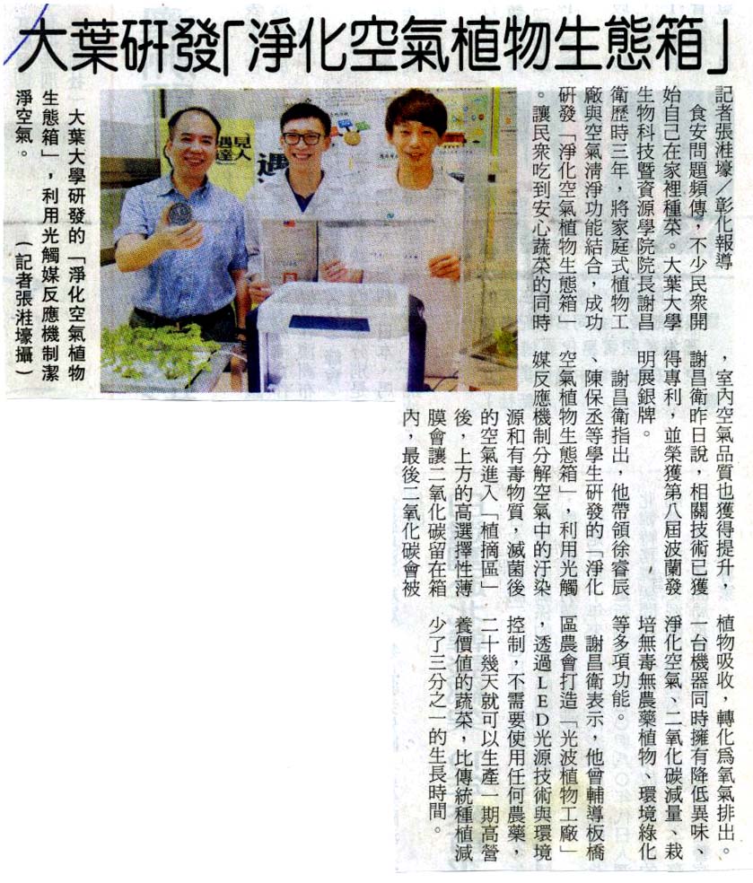 下一則:大葉研發淨化空氣植物生態箱 提升空氣品質吃到安心蔬菜