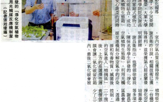 大葉研發「淨化空氣植物生態箱」