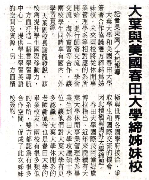 下一則:大葉大學與美國大學締結姊妹校