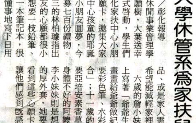 大葉大學休管系為家扶兒圓夢
