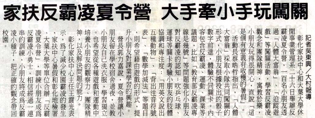 家扶反霸凌夏令營 大手牽小手玩闖關