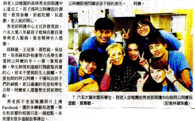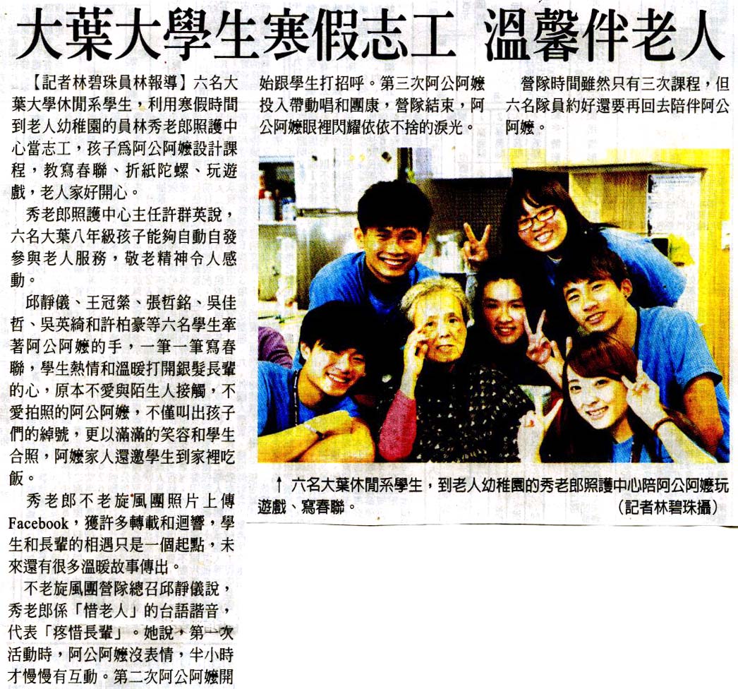 大葉大學生寒假志工 溫馨伴老人