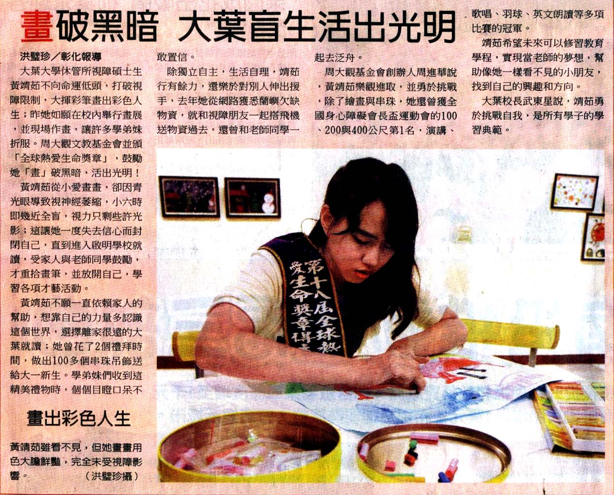 下一則:大葉盲生黃靖茹 獲頒熱愛生命獎