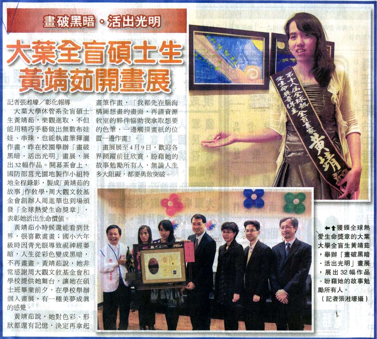 下一則:畫出光明路 視障黃靖茹獲頒獎章