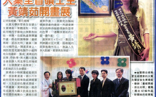 畫破黑暗、活出光明 大葉全盲碩士生 黃靖茹開畫展