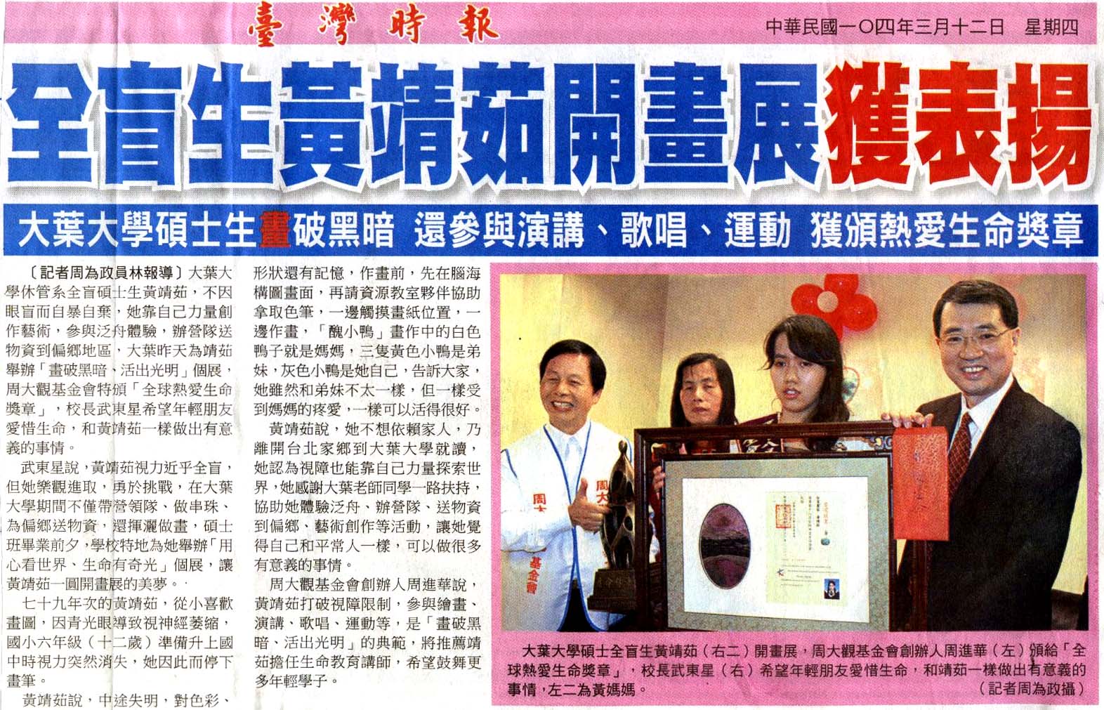下一則:畫破黑暗、活出光明 大葉全盲碩士生 黃靖茹開畫展