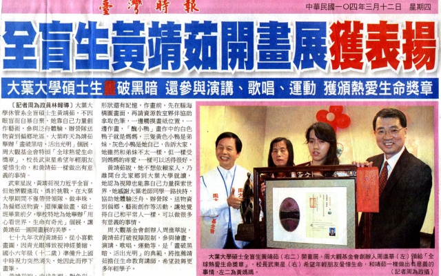 全盲生黃靖茹開畫展獲表揚