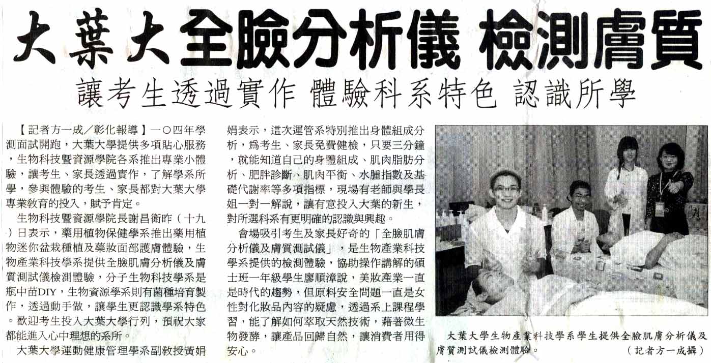 大葉大學全臉分析儀 檢測膚質