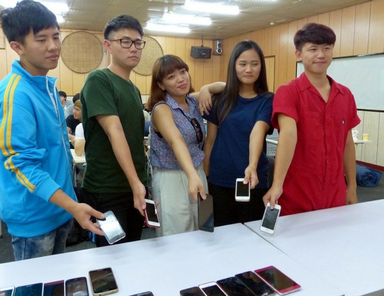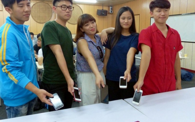 昨天是第一天,學生早上被迫交出手機,許多人依依不捨,不斷說「等一下,讓我回完line」、「我要再打一通電話」,交出後才依照組別分開,至各個農場打工。