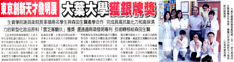 東京創新天才發明展 大葉大學獲銀牌獎