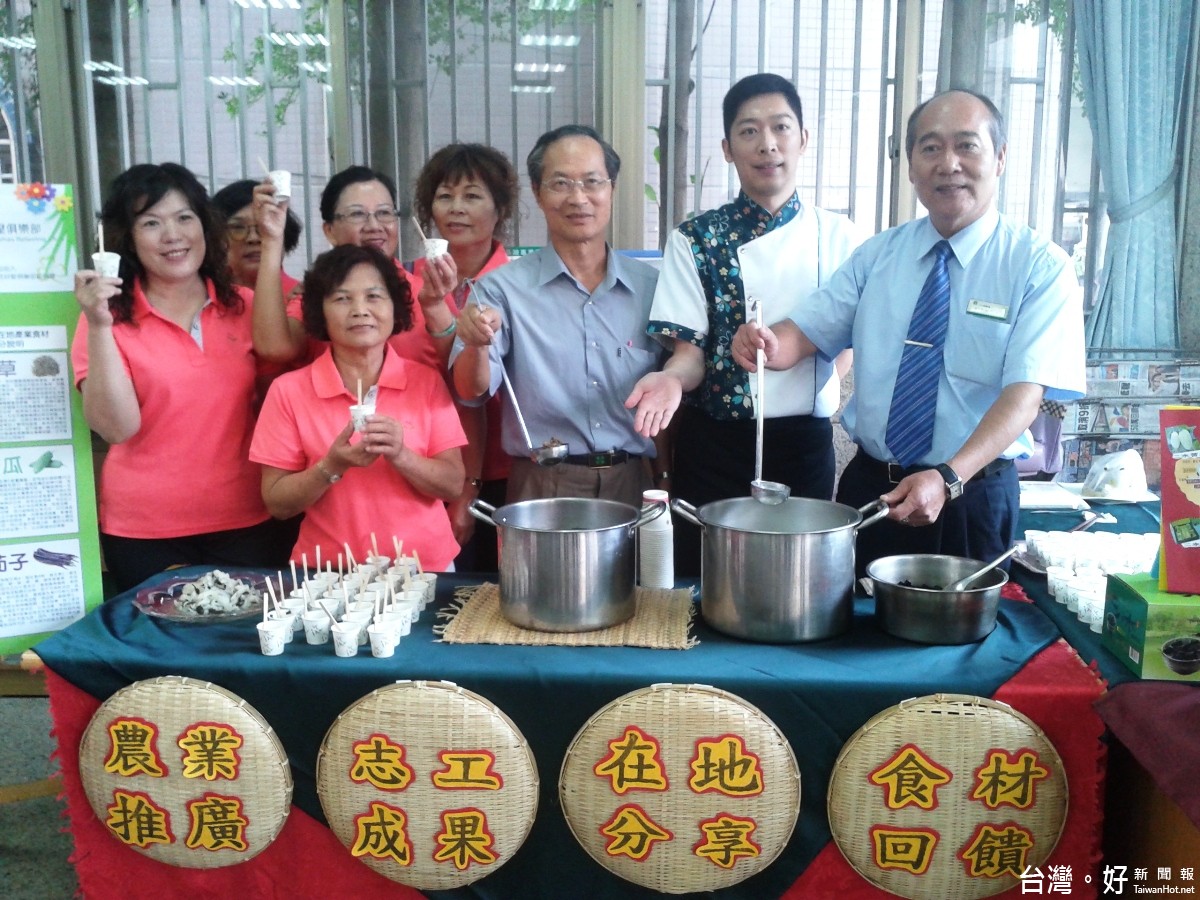 彰化縣二水鄉農會為推廣在地農產食材,特別開辦農業志工特殊訓練課程,聘請料理專家以二水在地食材,仙草、苦瓜、胭脂茄、濁水米等食材,研發色、香、味俱全的美食料理,17日上午舉辦成果分享,吸引許多洽公農友大快朵頤。