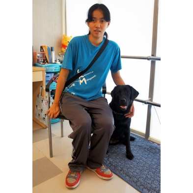 大葉大學休閒事業管理學系碩士班視障生黃靖茹,8月底赴韓國與導盲犬Tamra配對成功,經過數週的飼主訓練,靖茹帶著導盲犬Tamra一起住進學校宿舍。黃靖茹表示,Tamra就像是她的第二雙眼睛,有Tamra的陪伴,不只是走路更有安全感和自信心,生活也多了一個傾訴心情的對象。