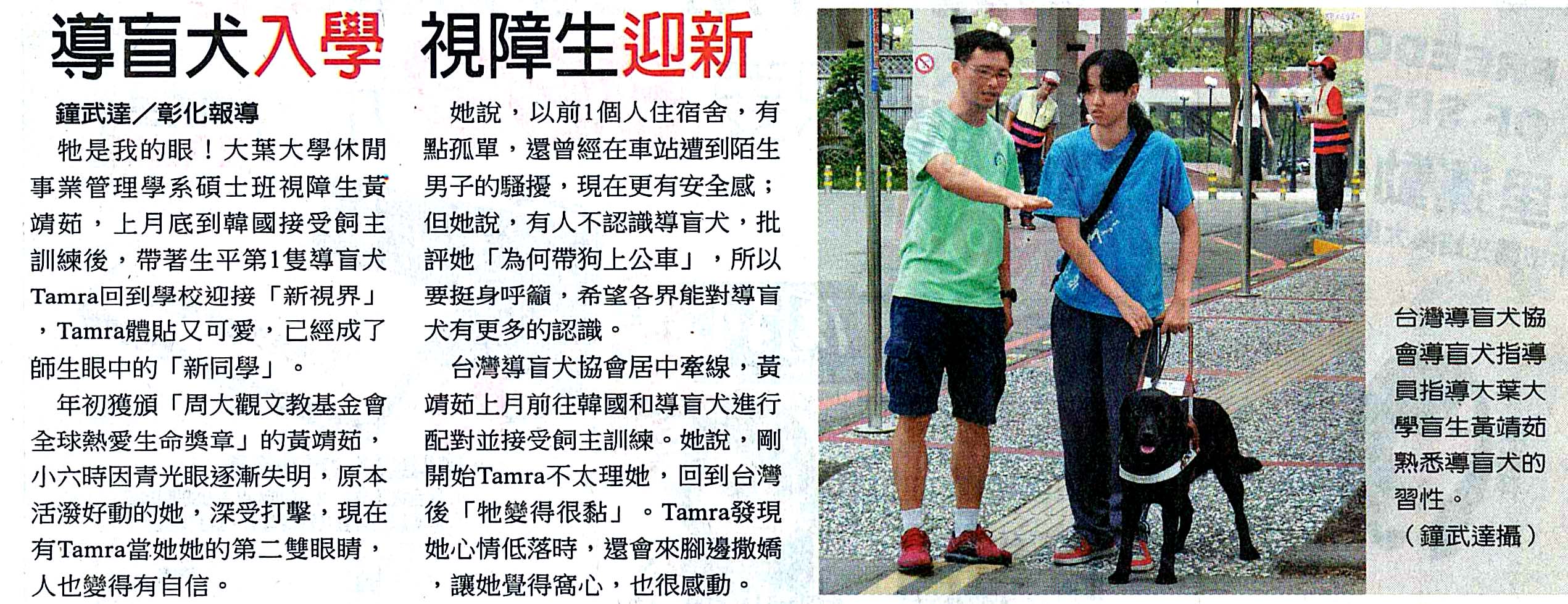 下一則:導盲犬陪伴 視障生黃靖茹安心