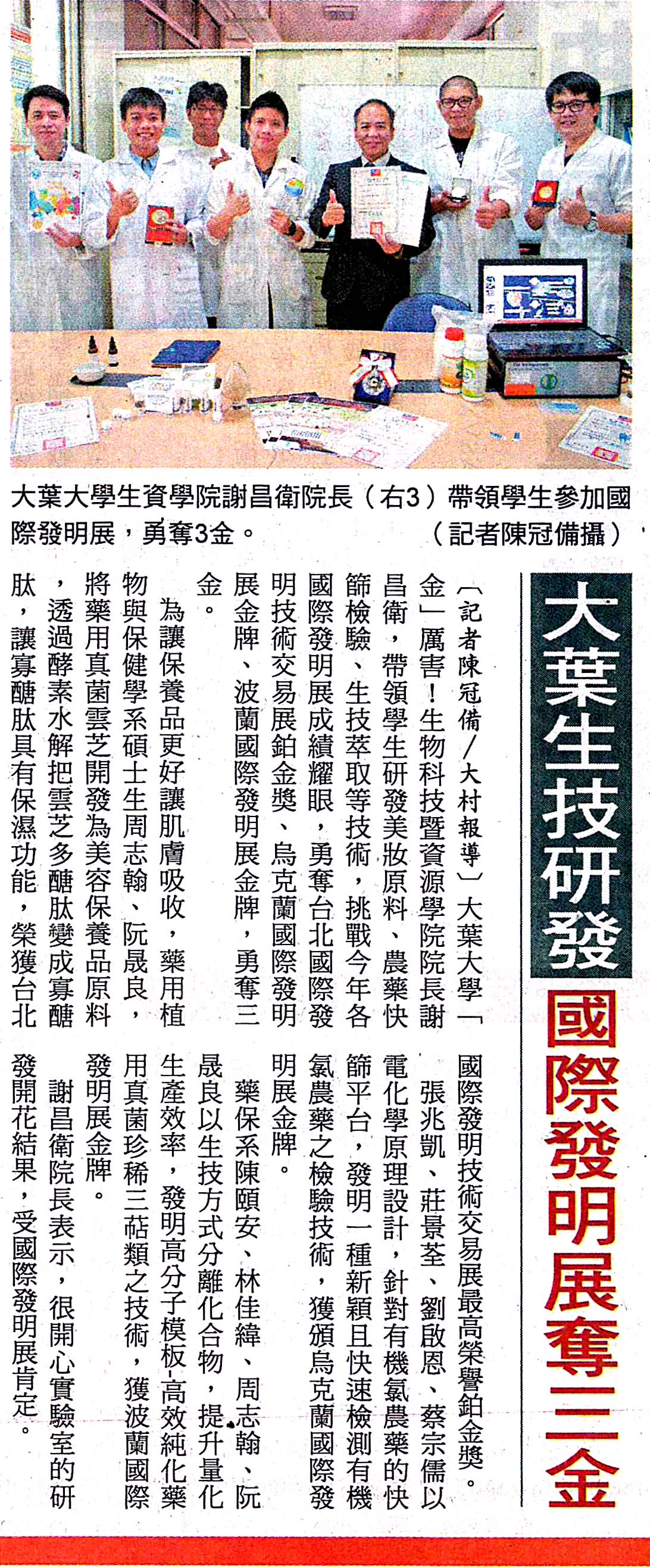 下一則:大葉生技研發 國際發明展奪3金