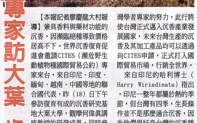 下一則:大葉大學沉香復育有成 各國專家觀摩