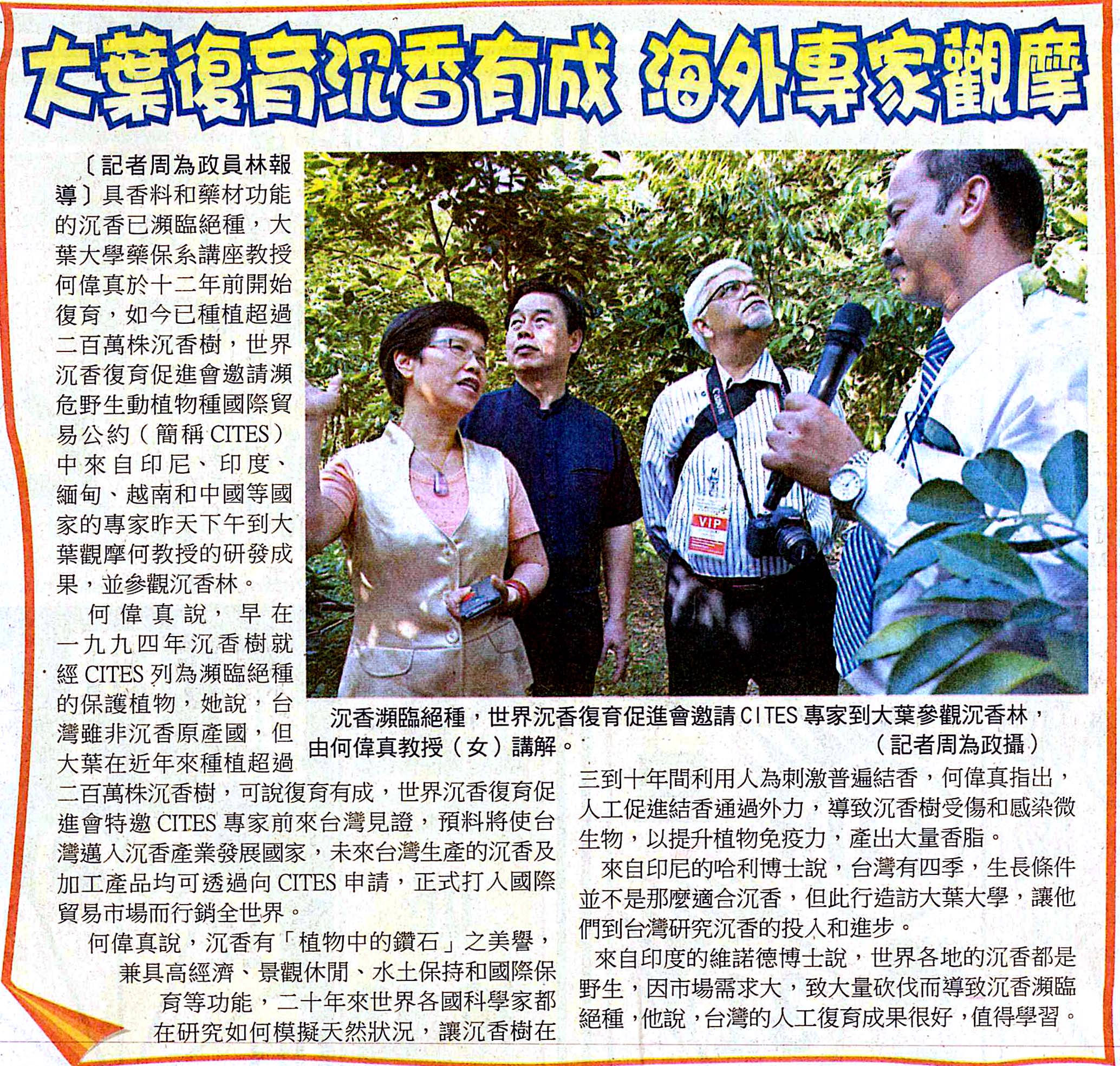 大葉復育沉香有成 海外專家觀摩