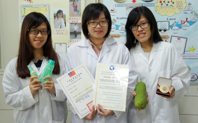 藥用植物與保健學系大三生李旻表示,歷時兩年多發明的「增加絲瓜水保濕能力之奈米過濾薄膜」技術,以奈米薄膜過濾技術取代傳統的濃縮方式。薄膜過濾的原理類似RO逆滲透,能將一噸絲瓜水濃縮為100公克的原料,不僅降低了90%運費,多出來的水可以留在菜園供農用。此技術經實驗證實,能提高絲瓜水的天然多醣含量,製成產品的保濕度更好。