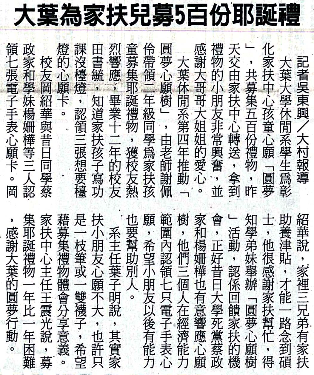 下一則:大葉學生募禮物 圓家扶兒耶誕夢
