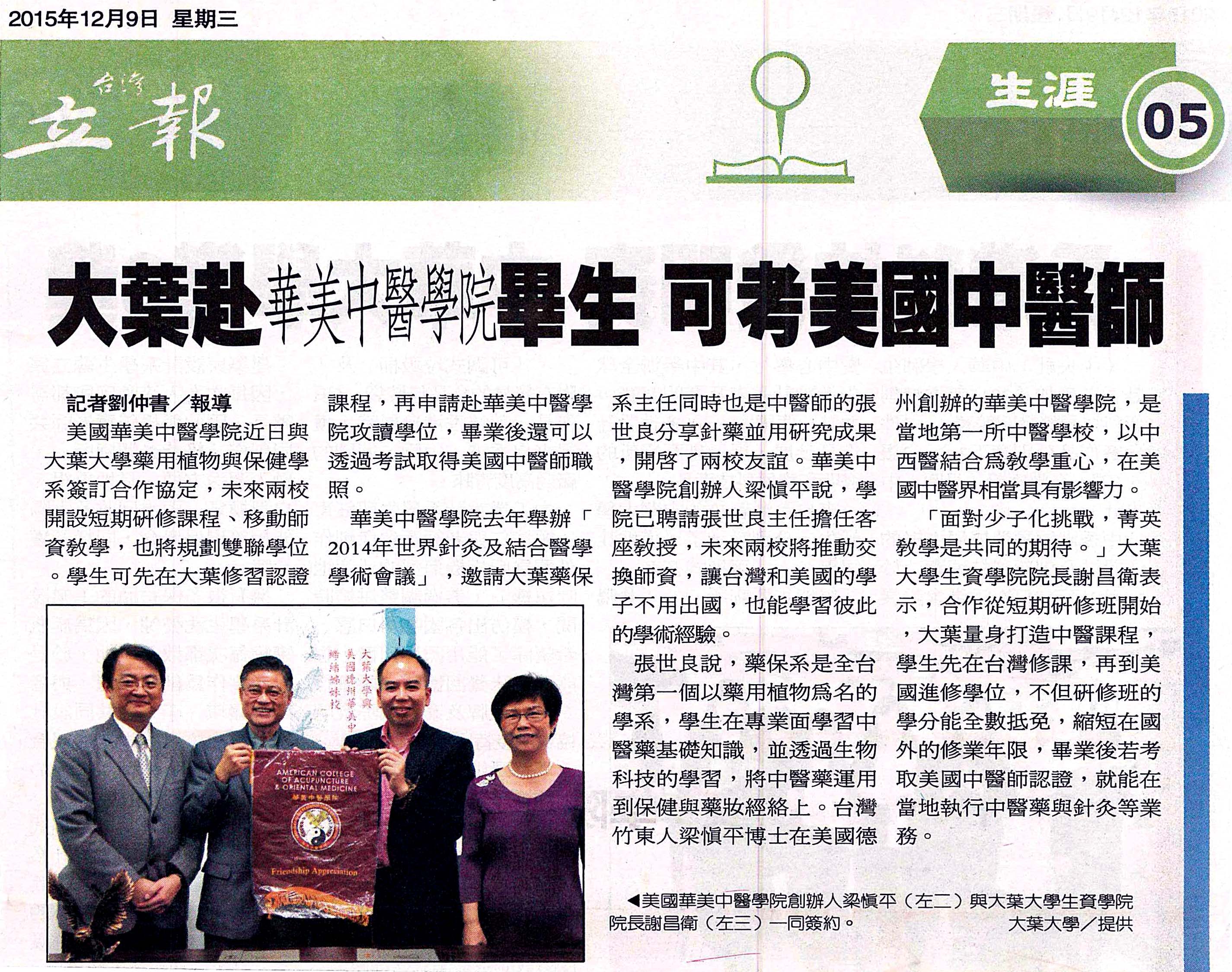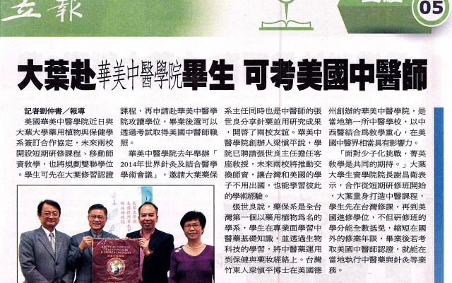 大葉赴華美中醫學院畢生 可考美國中醫師
