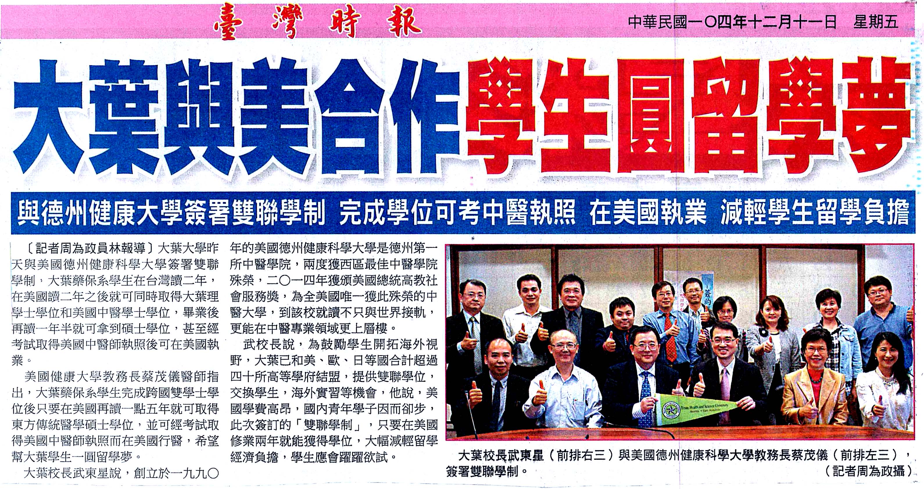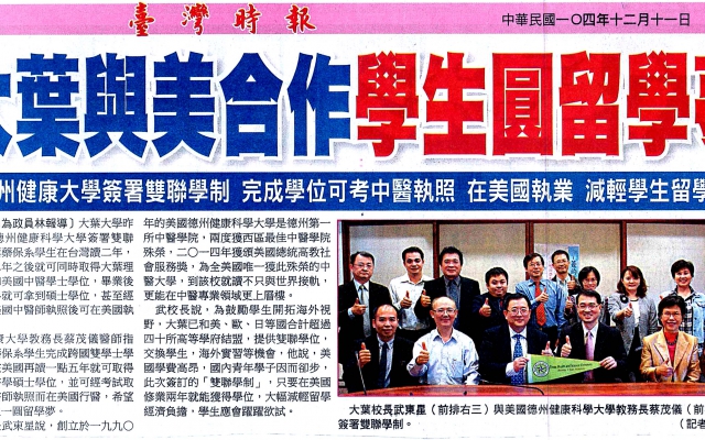 上一則:大葉大學與美國健康大學簽署雙聯學制