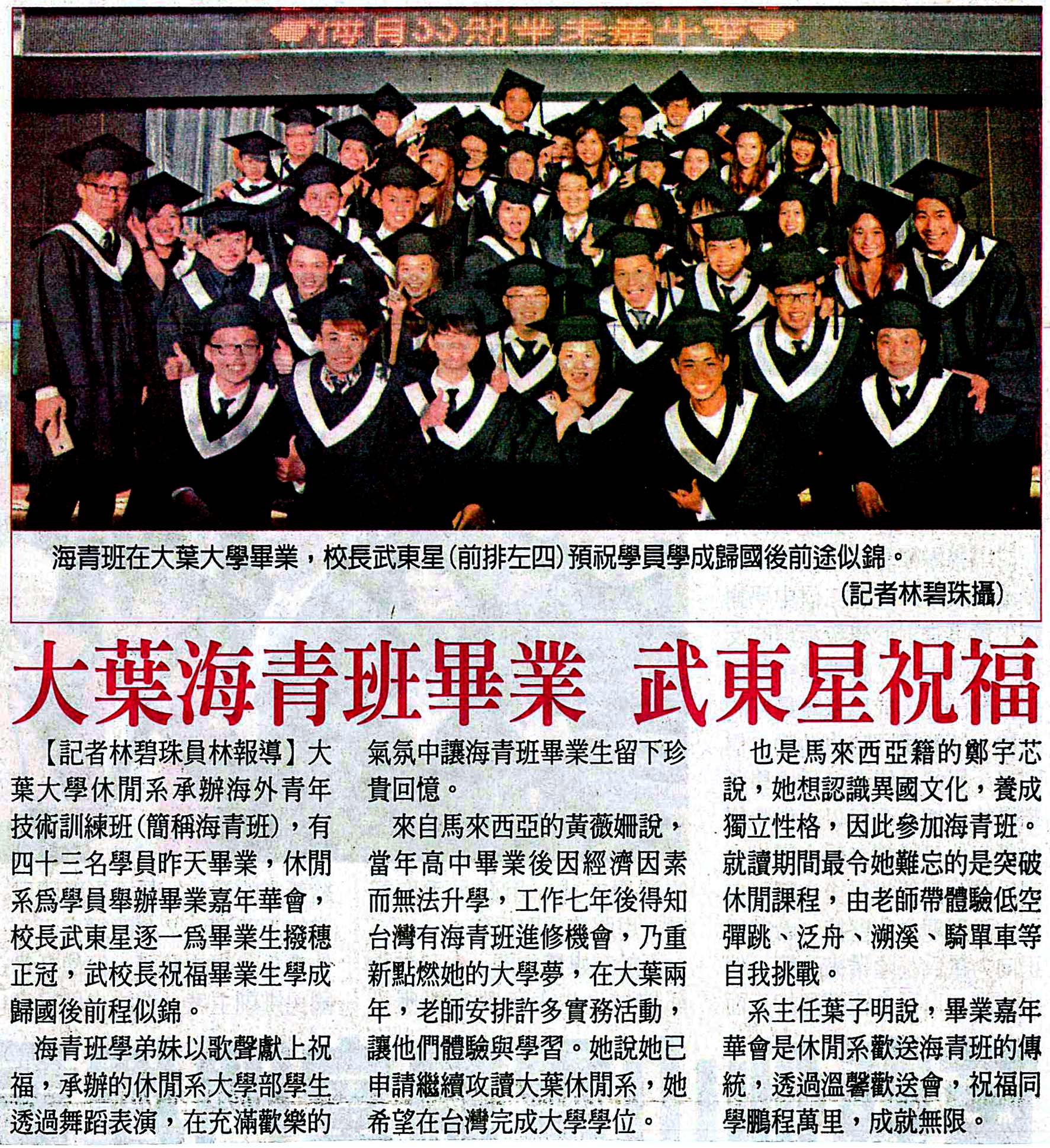 大葉大學海青班畢業 武東星祝福