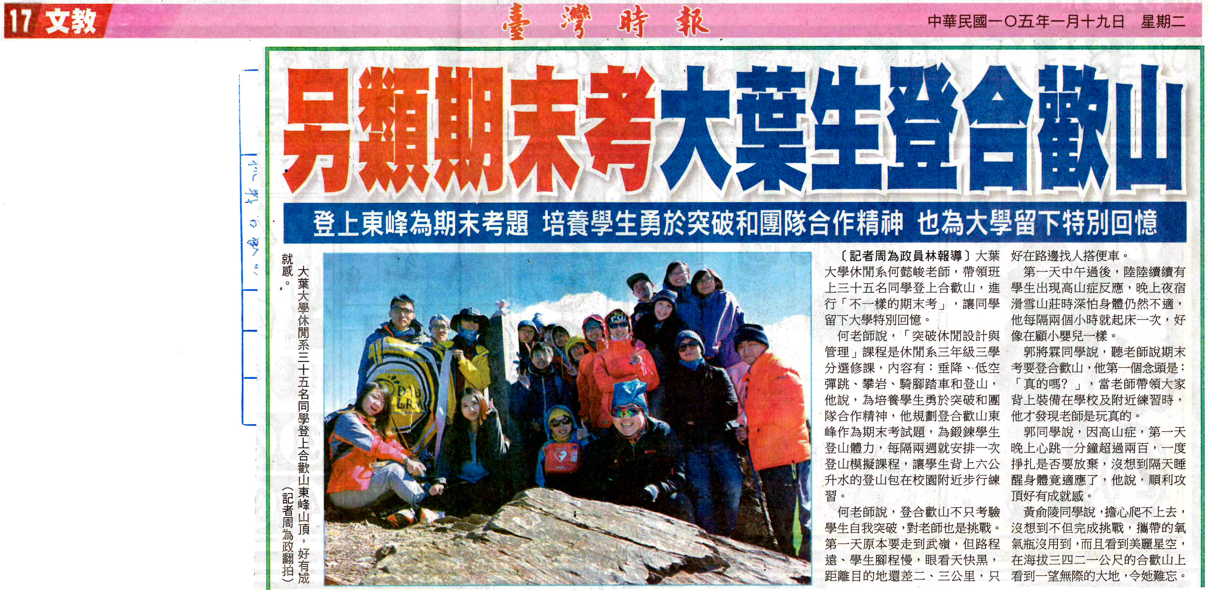 另類期末考大葉生登合歡山