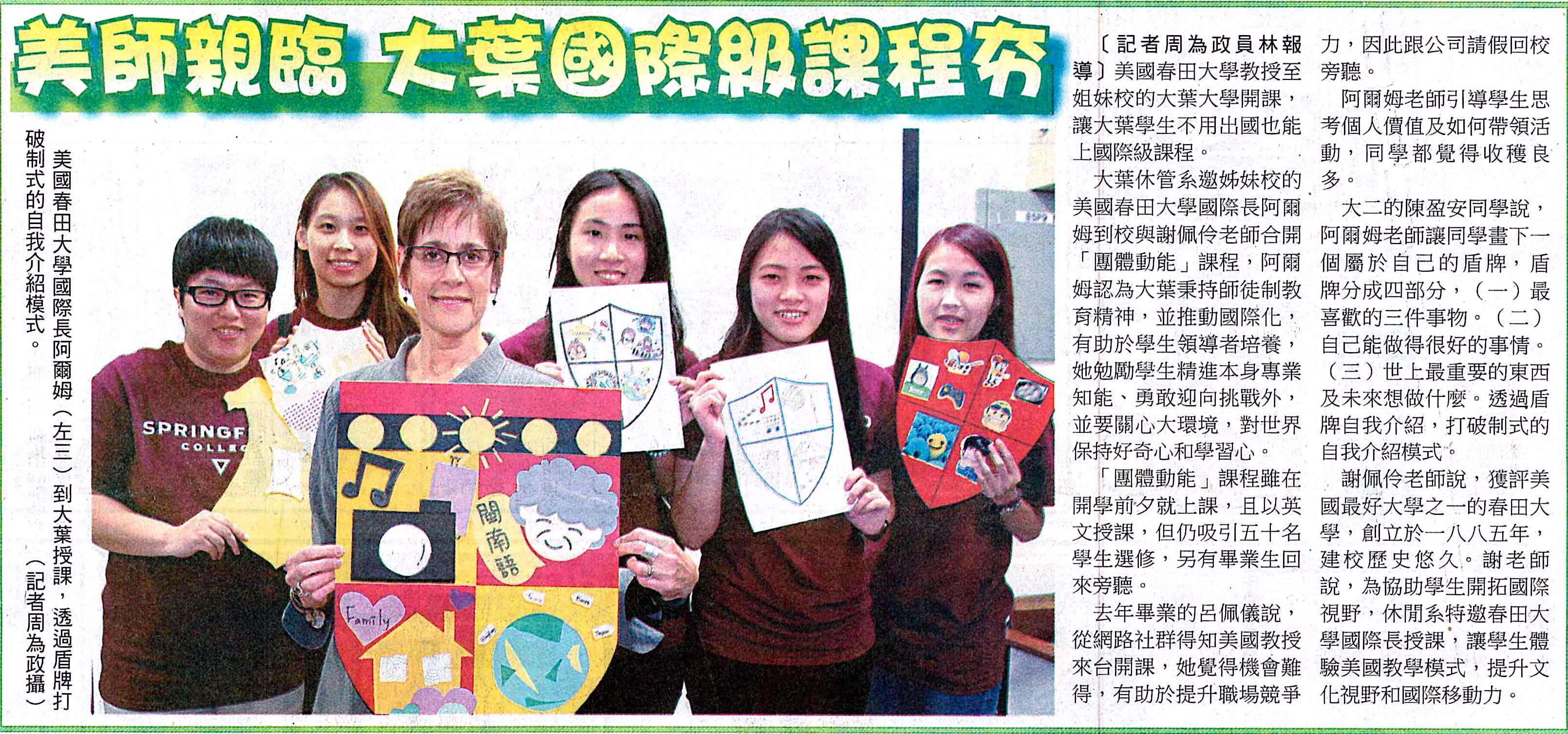 下一則:課程國際化 大葉大學邀美國姐妹校教授來台授課