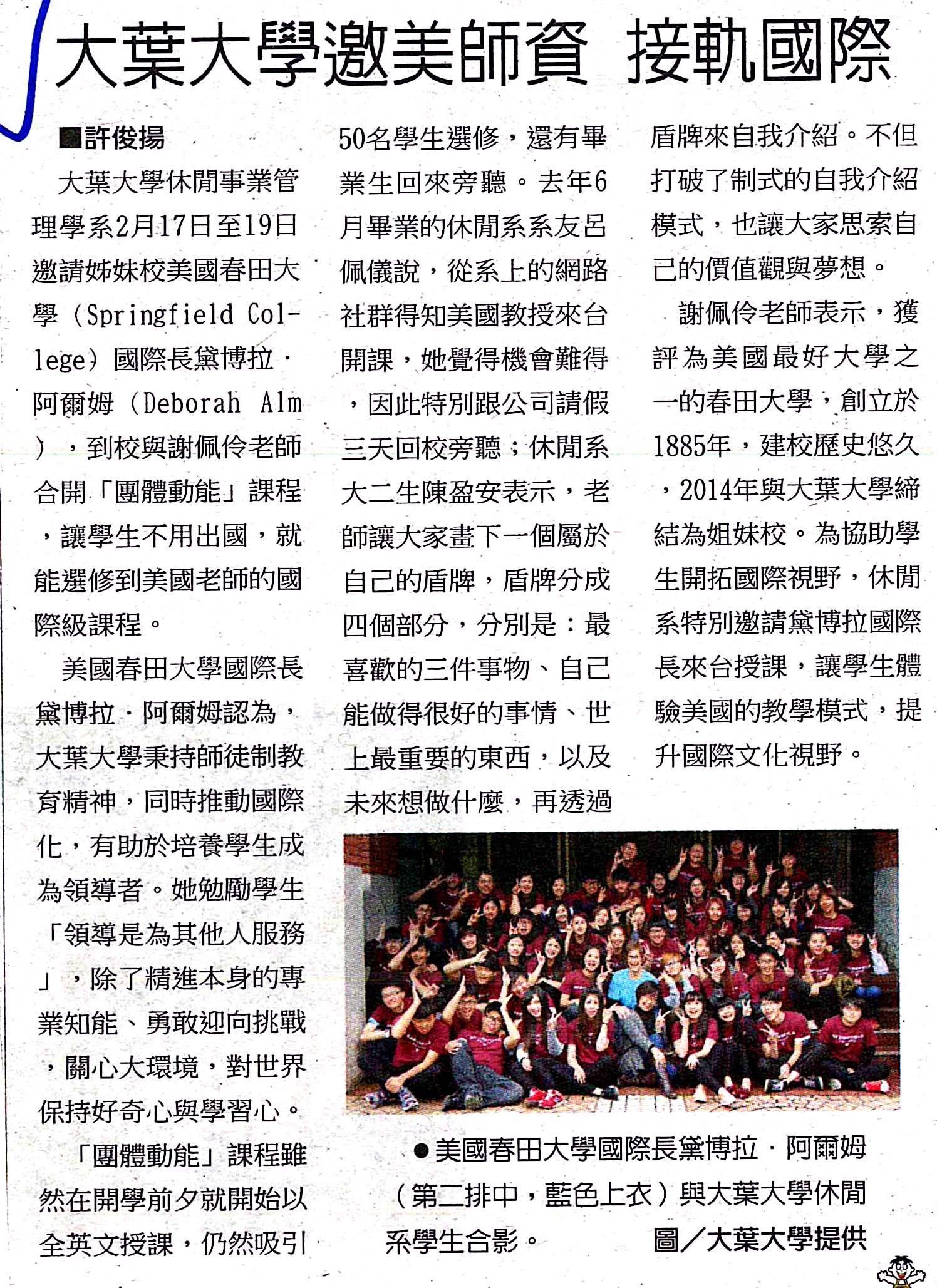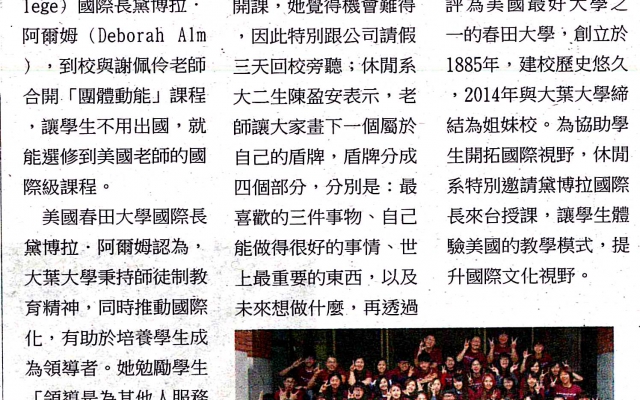 大葉大學邀美師資 接軌國際