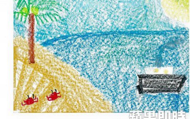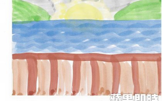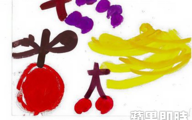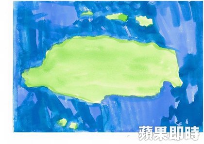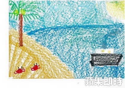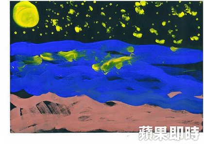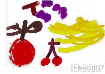 黃靖茹說,她作畫時利用蠟筆和水彩、廣告顏料,並在顏料上貼上點字,一開始作畫時常仰賴輔具,例如想畫西瓜,就會拿膠帶描內框畫一個圓圈,不過老師提醒她盡量不要描框上色,她才開始不怕畫錯,大膽作畫。