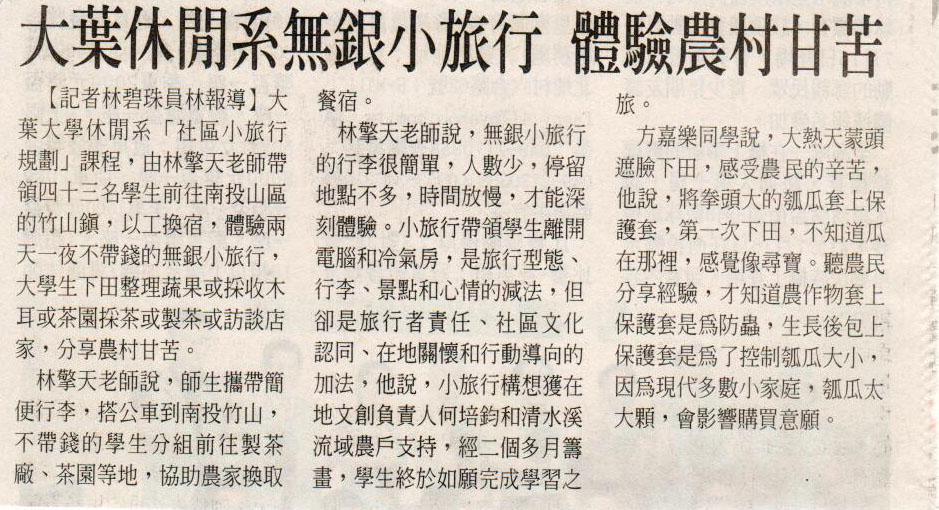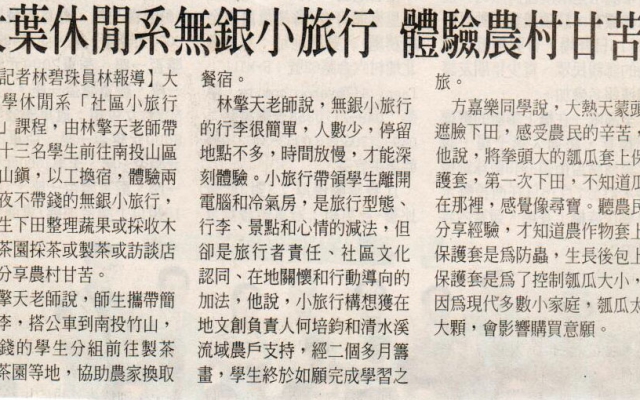大葉休閒系無銀小旅行 體驗農村甘苦