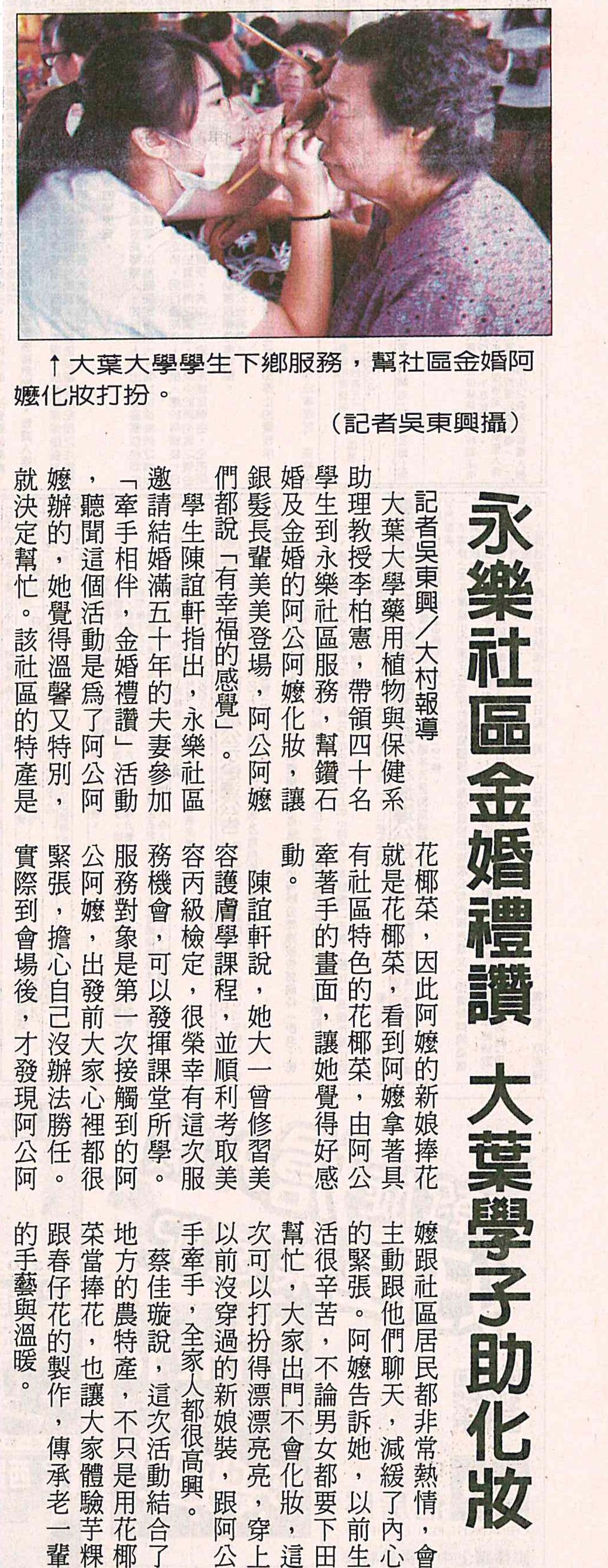 永樂社區金婚禮讚 大葉學子助化妝