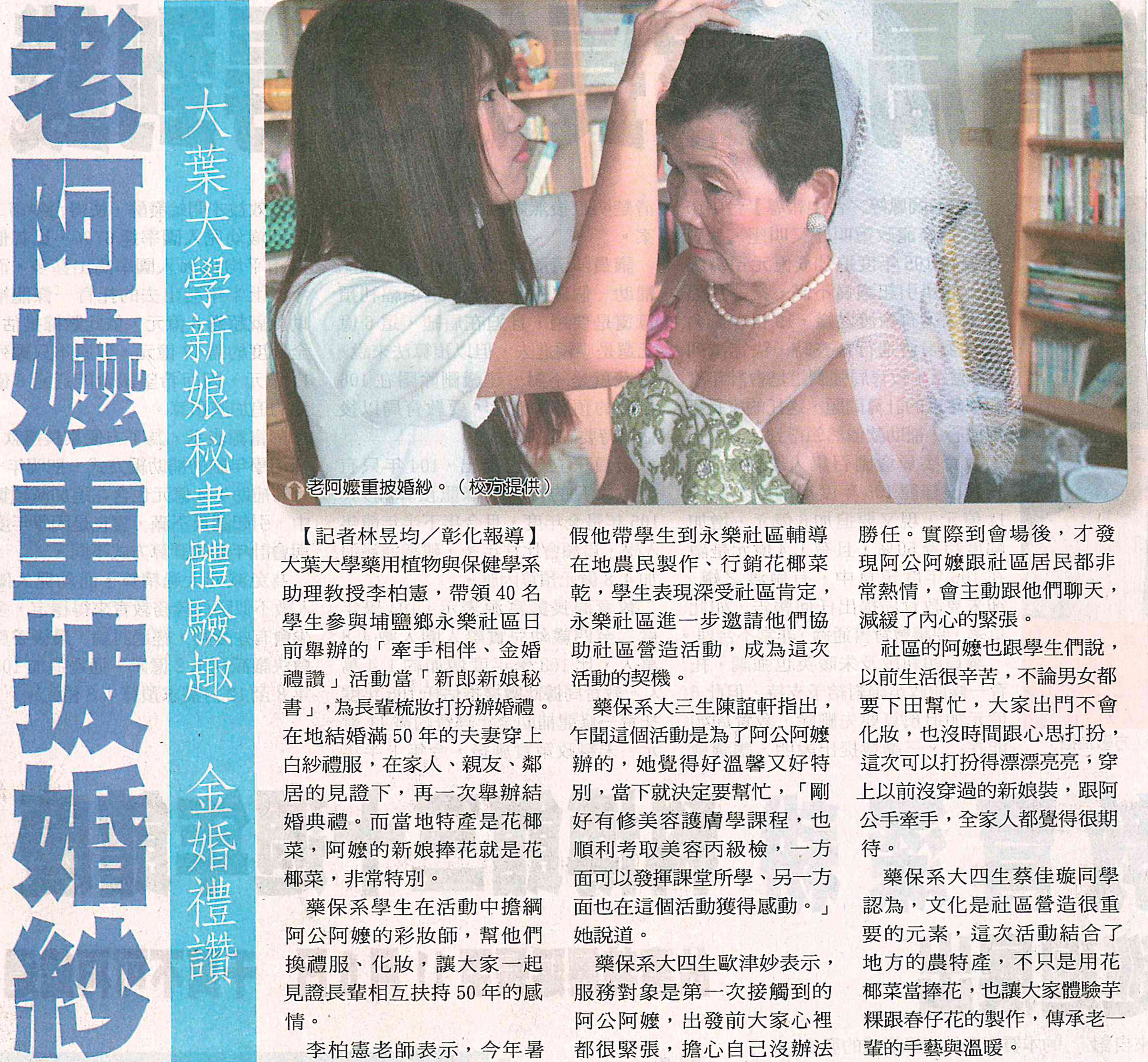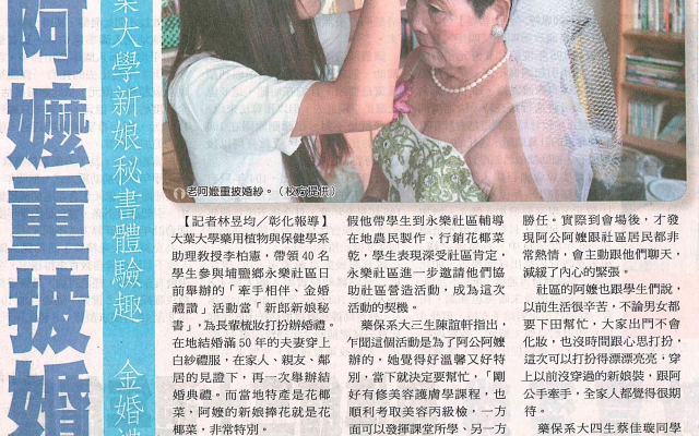 老阿嬤重披婚紗 大葉大學新娘秘書體驗趣 金婚禮讚