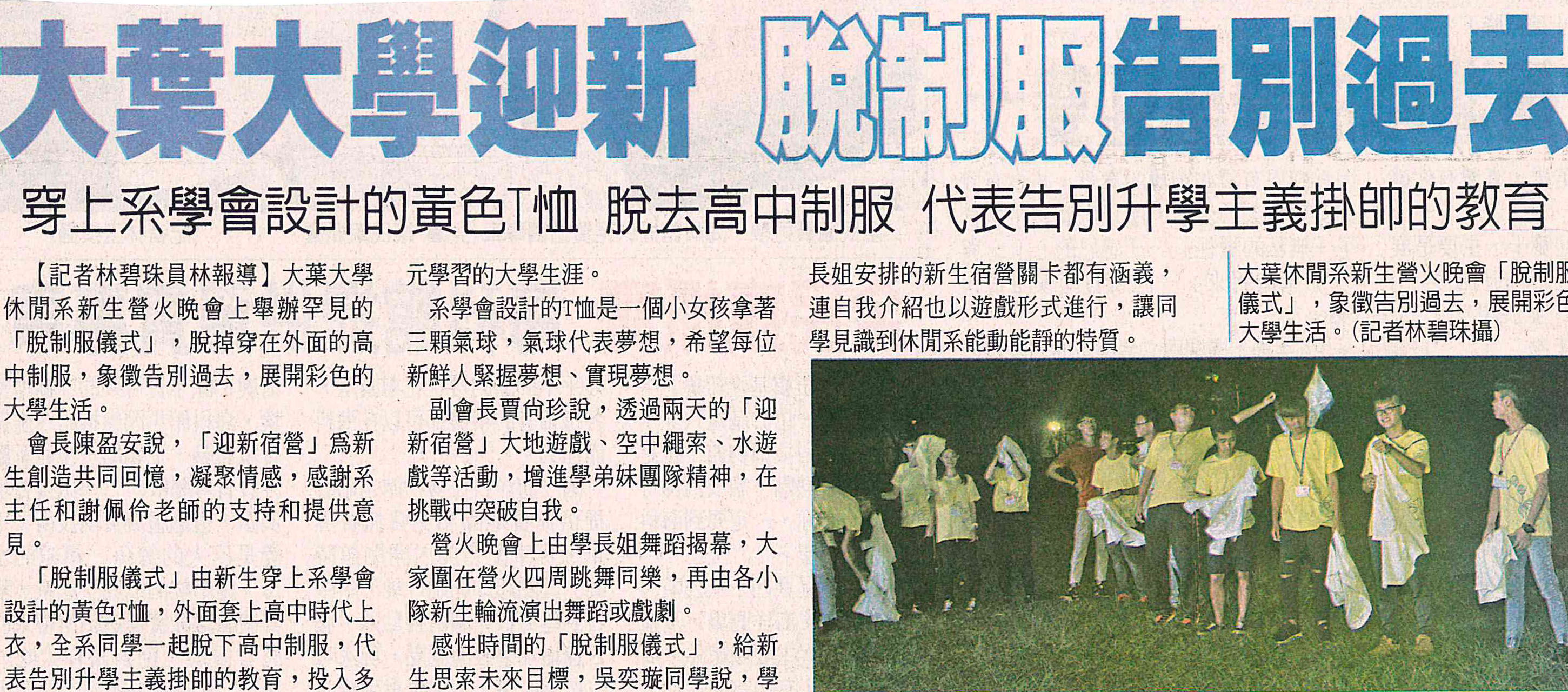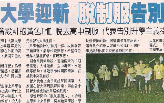 大葉大學迎新 脫制服告別過去