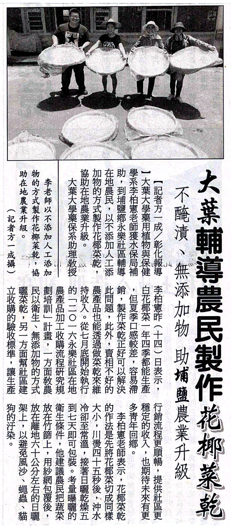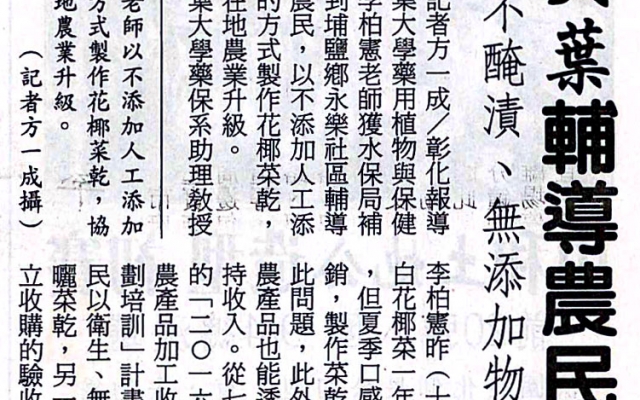 下一則:製花椰菜乾 大葉輔導農民