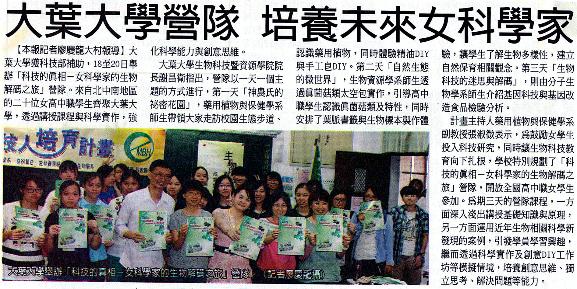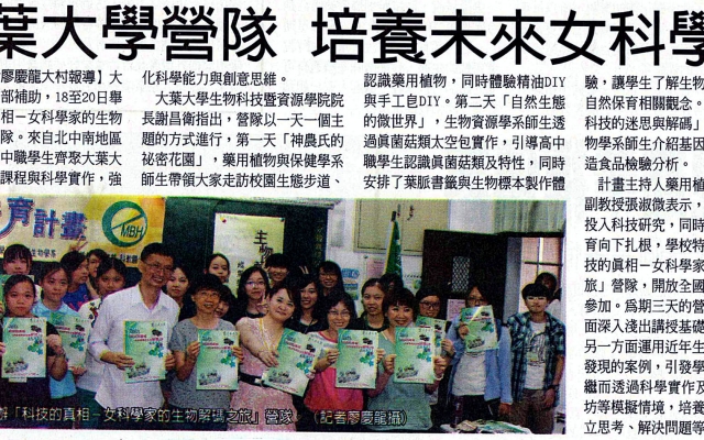 大葉大學營隊 培養未來女科學家