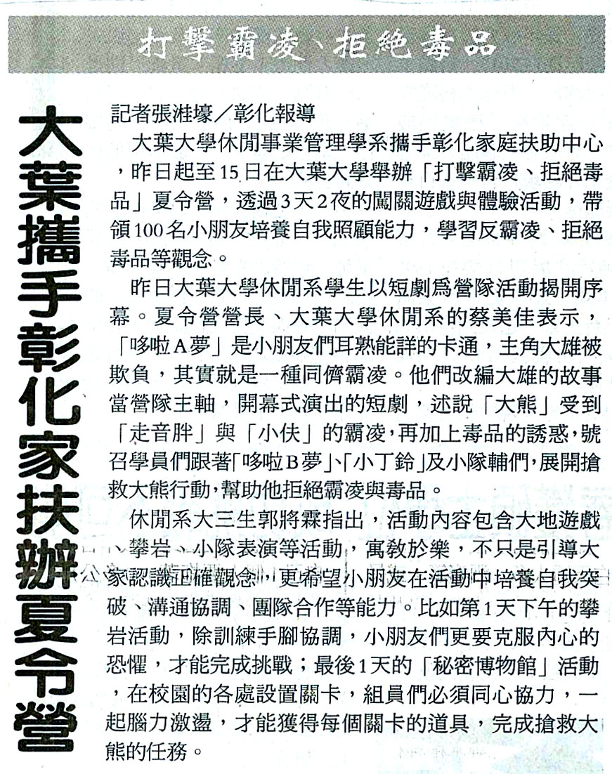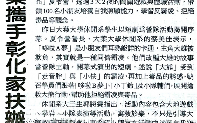 下一則:大葉攜手彰家扶 反霸凌拒毒