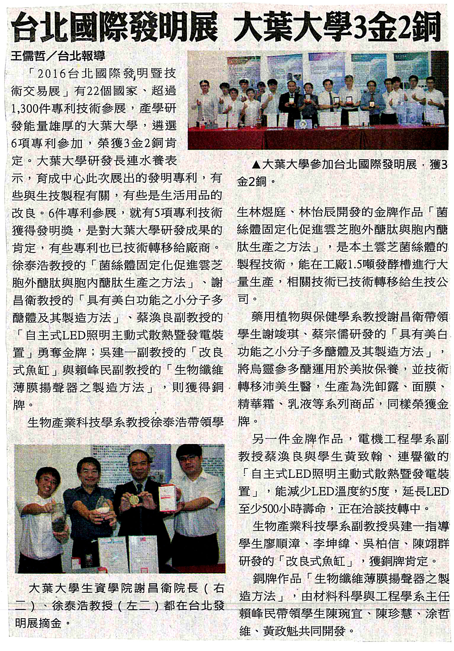 台北國際發明展 大葉大學3金2銅