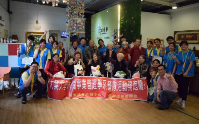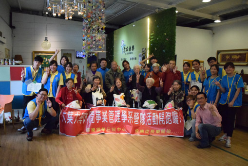 大葉大學休閒事業管理學系大三生王冠縈、薛椲譯、陳姿廷、賴薏雯、王靖元、黃嬿綾、林宜姍,利用寒假到長樂銀髮日間照顧中心當志工三天,為阿公阿嬤量身設計營隊,帶長輩們玩遊戲、做手工藝。