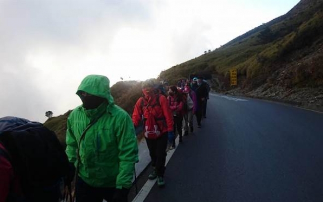 大葉大學休閒事業管理學系大三選修課「突破休閒設計與管理」,何懿峻老師帶領40名學生脫離舒適圈,到合歡山進行三天兩夜的登山活動,作為期末考,培養學生自我突破的精神。