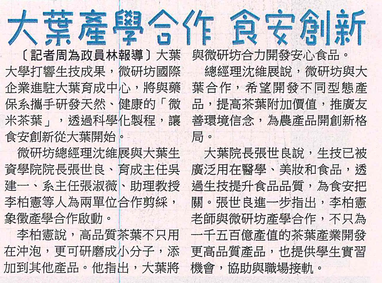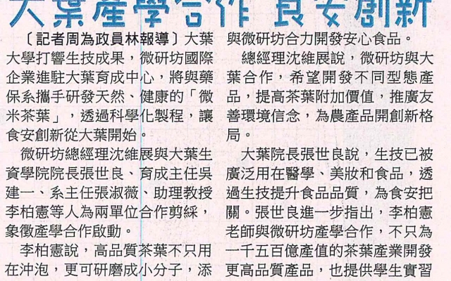 大葉產學合作 食安創新